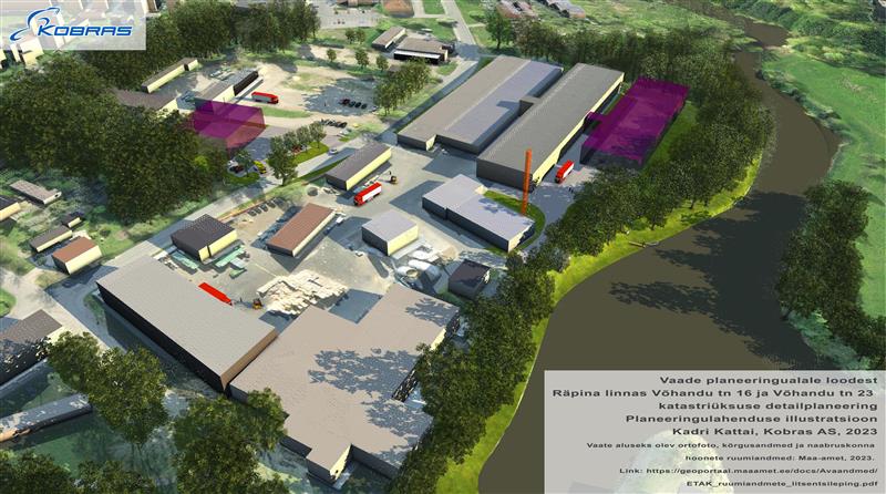 Räpina Vallavolikogu kehtestas 17.09.2025 otsusega nr 27 Räpina linnas asuva Võhandu tn 16 ja Võhandu tn 23 katastriüksuse detailplaneeringu (https://www.rapina.ee/rapina-linnas-vohandu-tn-16-ja-vohandu-tn-23-katastriuksuse-detailplaneeringu…) . Planeeringuga on Võhandu tn 16 katastriüksusele kavandatud tootmis- ja laohoone ning Võhandu tn 23 katastriüksusele katlamaja. Planeeringu koostamise käigus modelleeriti uue katlamaja ja tootmishoone müraolukord ning hinnati olemasolevate müraallikate koosmõju.